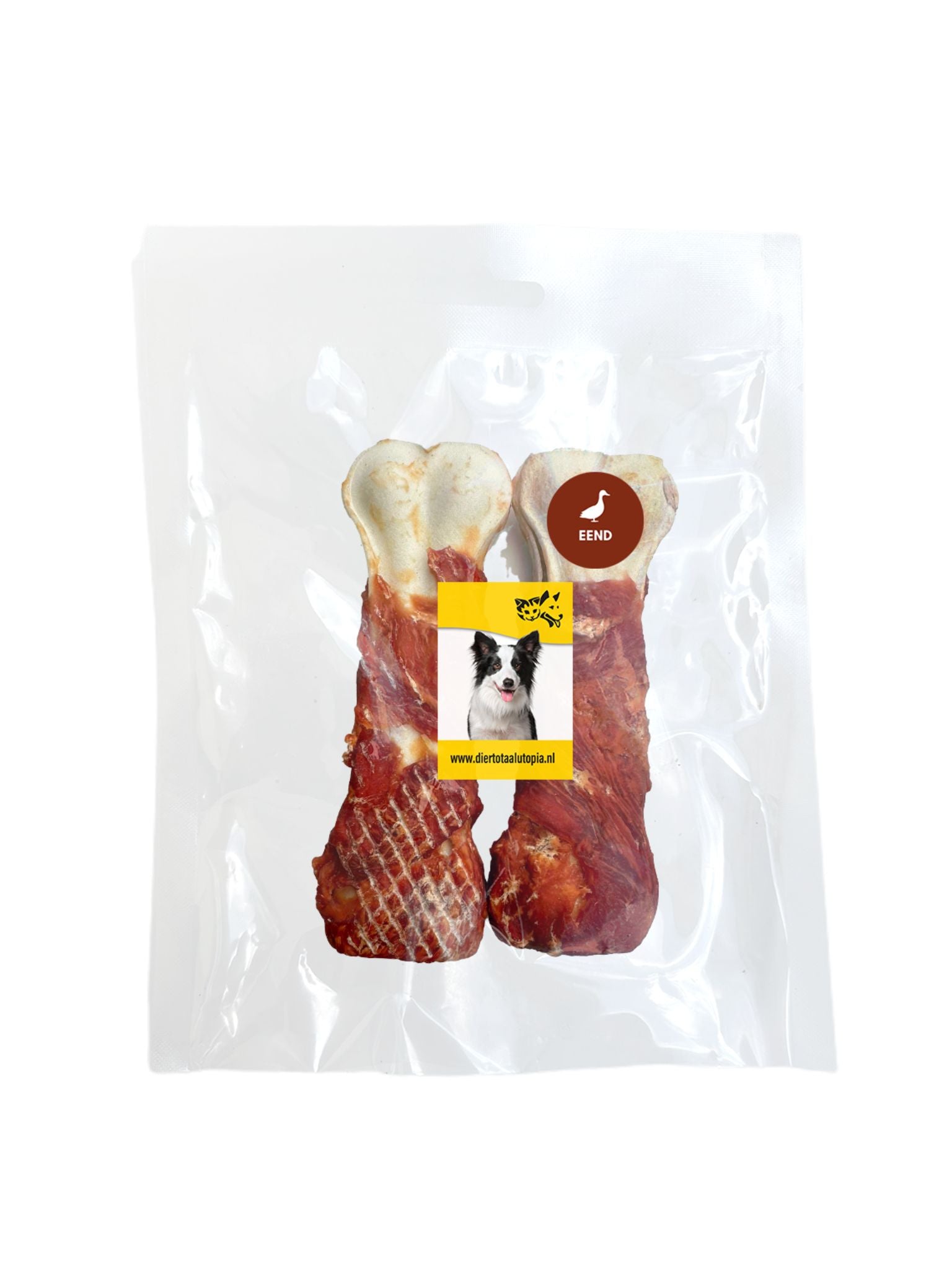 Samenstelling: onderhuids bindweefsel van runderhuid, omwikkeld met eendfilet