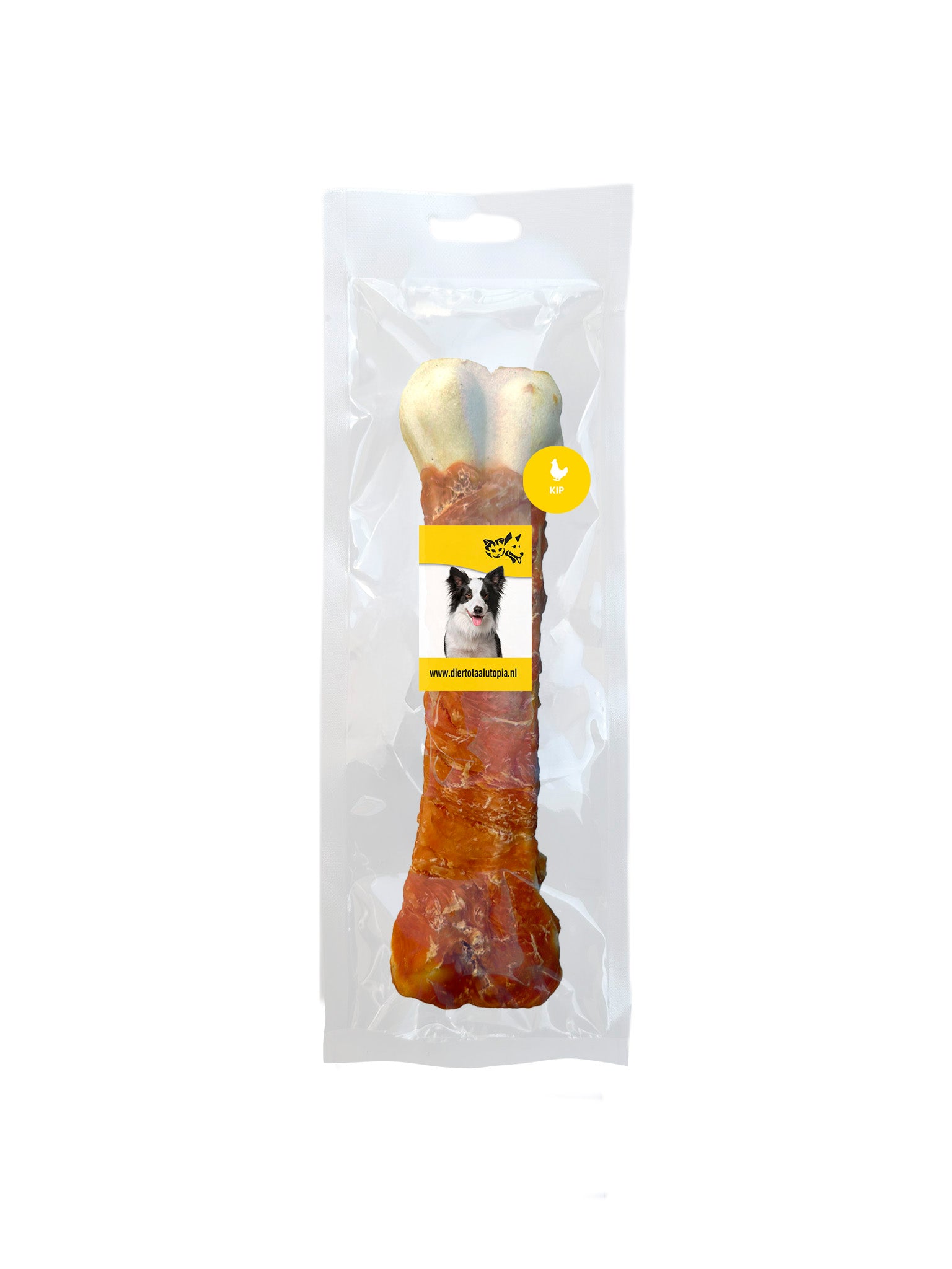 Samenstelling: onderhuids bindweefsel van runderhuid, omwikkeld met kipfilet.