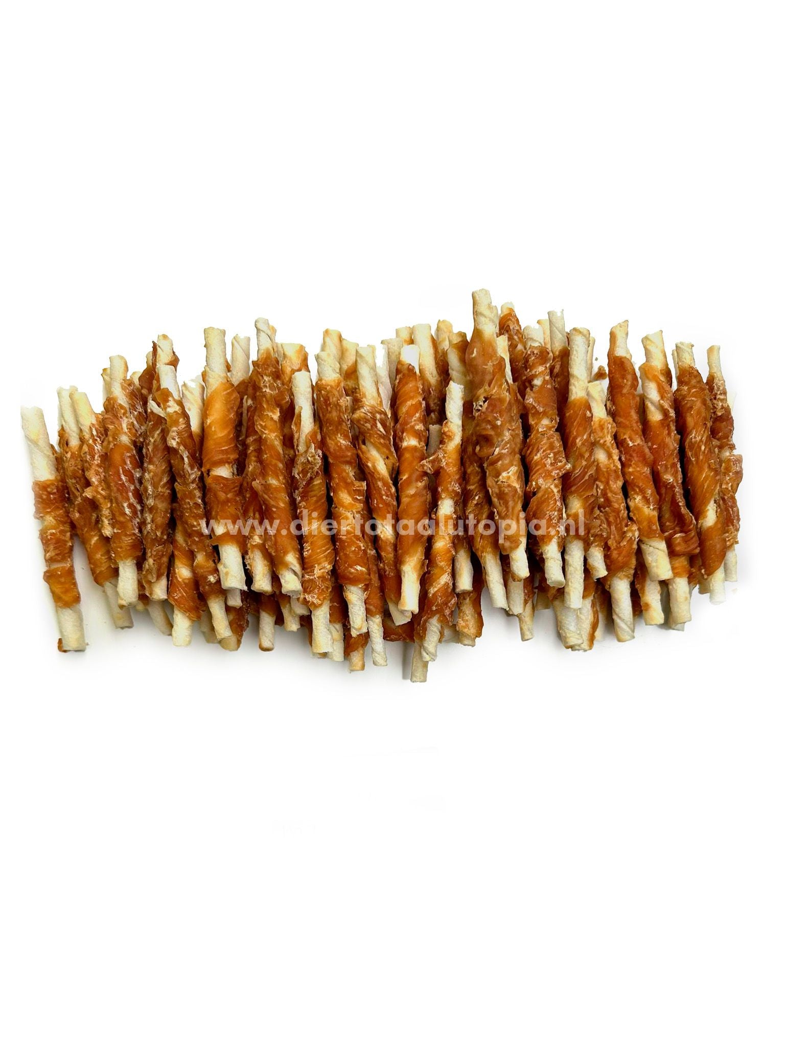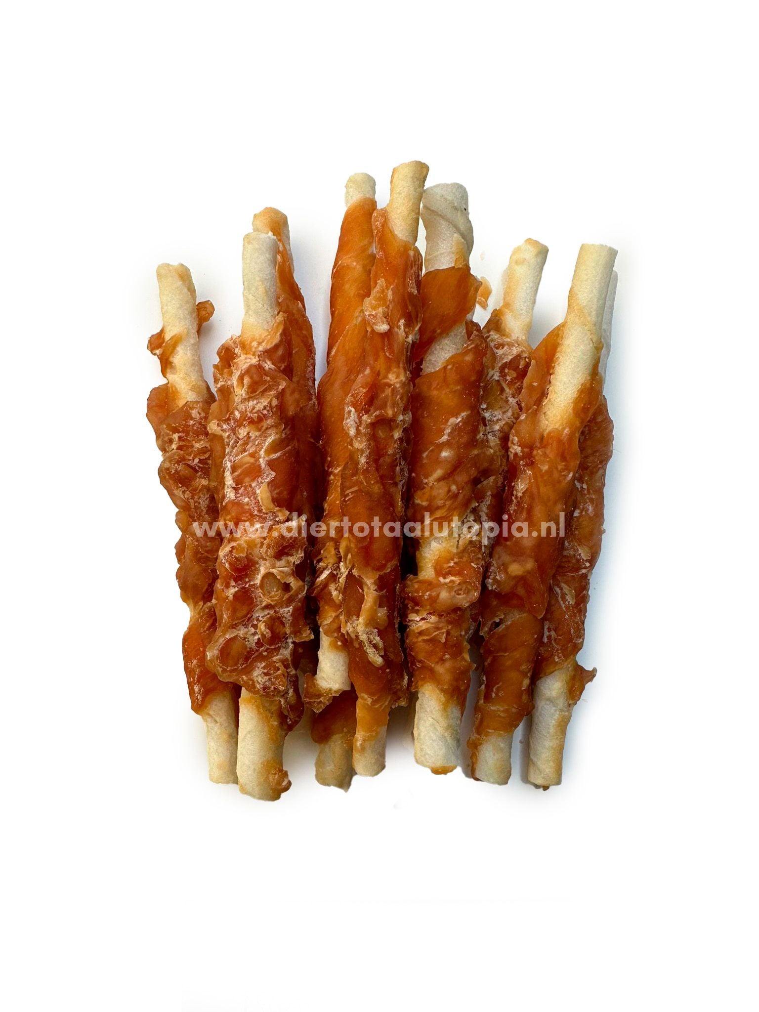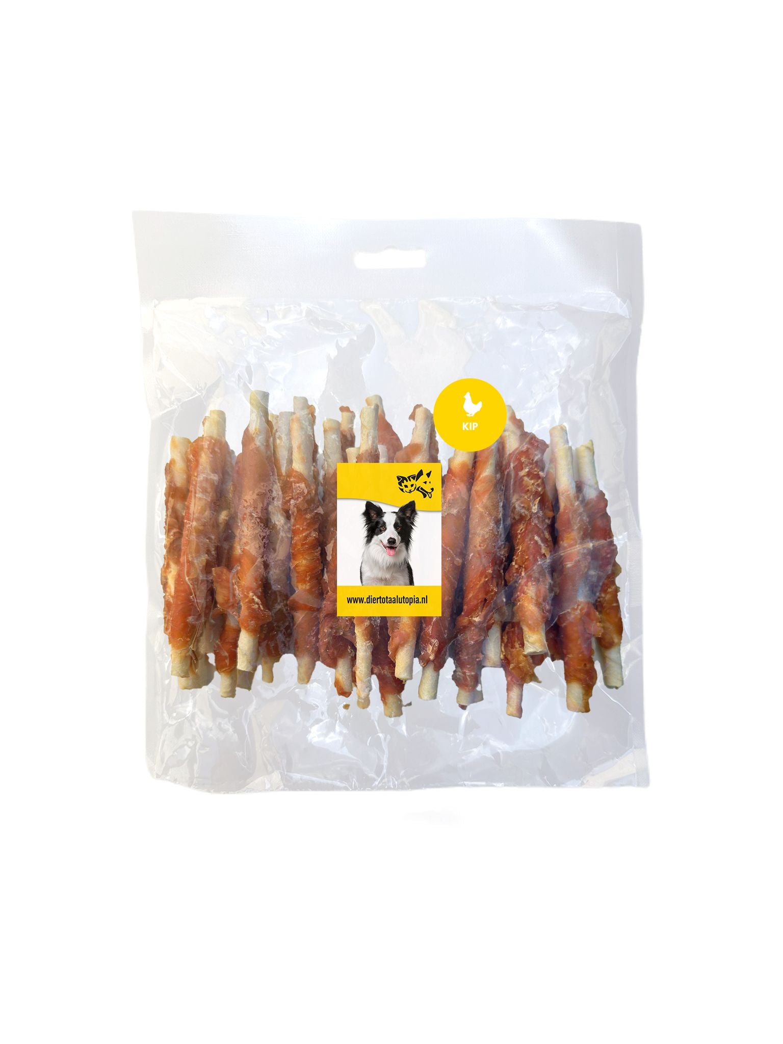Samenstelling: gedraaide kauwstaafjes van onderhuids bindweefsel van rund, omwikkeld met kipfilet.