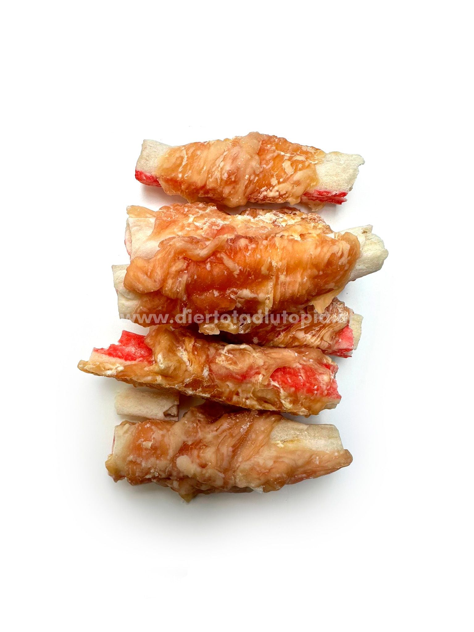 Samenstelling: krabstick, omwikkeld met kipfilet