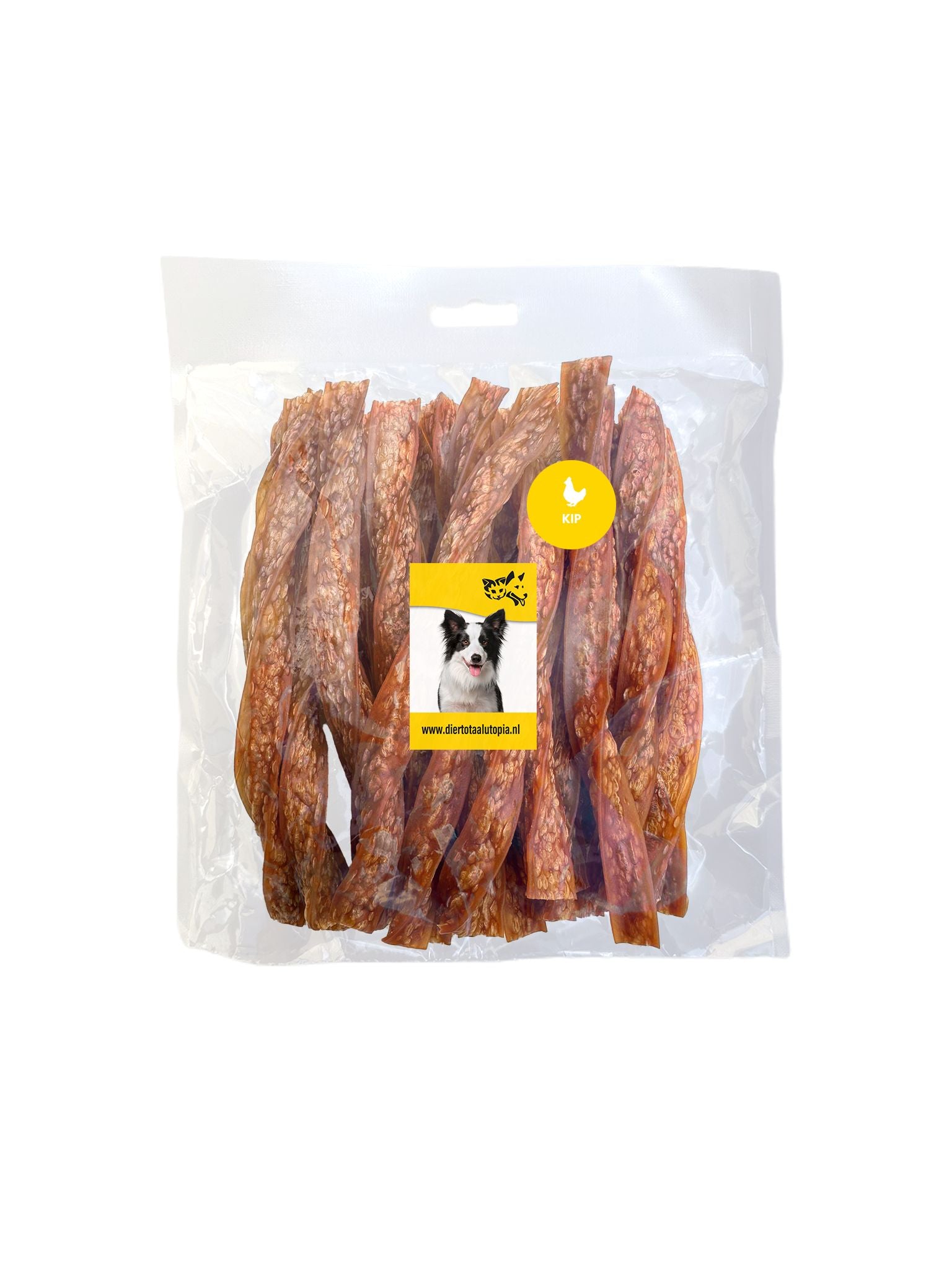 Kies de juiste maat kluif voor je hond om te voorkomen dat de kluif klem komt te zitten in de bek. Een richtlijn is 1,5 keer de lengte van de bek van je hond. Biedt kauwmateriaal alleen aan onder toezicht. Veel honden verslikken zich in het laatste stukje kluif. Ruil om deze reden het laatste stukje kluif voor een snoepje en gooi dit weg.