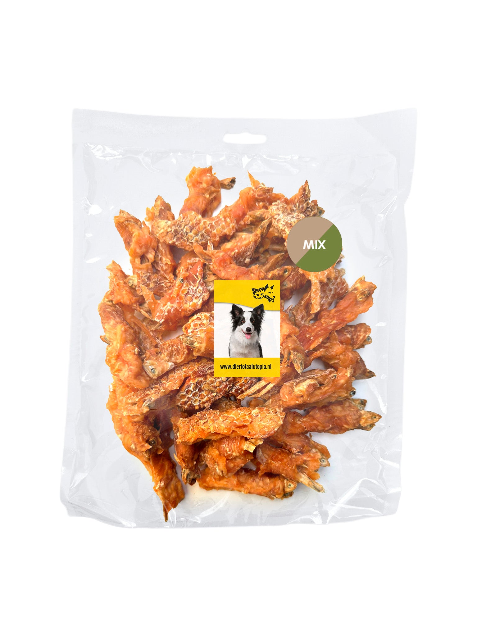 Samenstelling: gedroogd visje omwikkeld met kipfilet