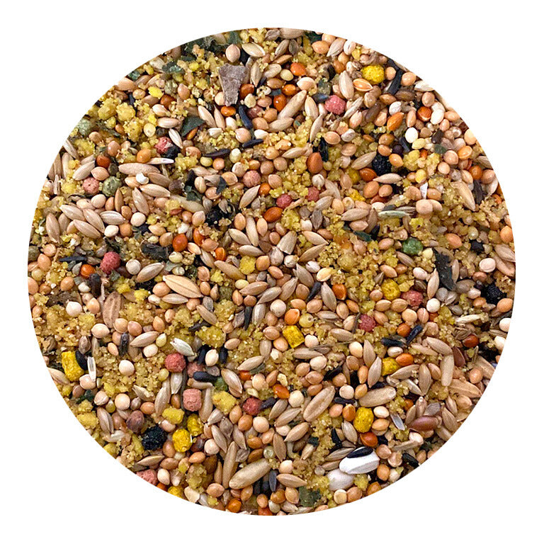 -De toegevoegde maagkiezel zorgt voor een goede vertering, en oestergrit voorziet in de natuurlijke behoefte aan calcium.